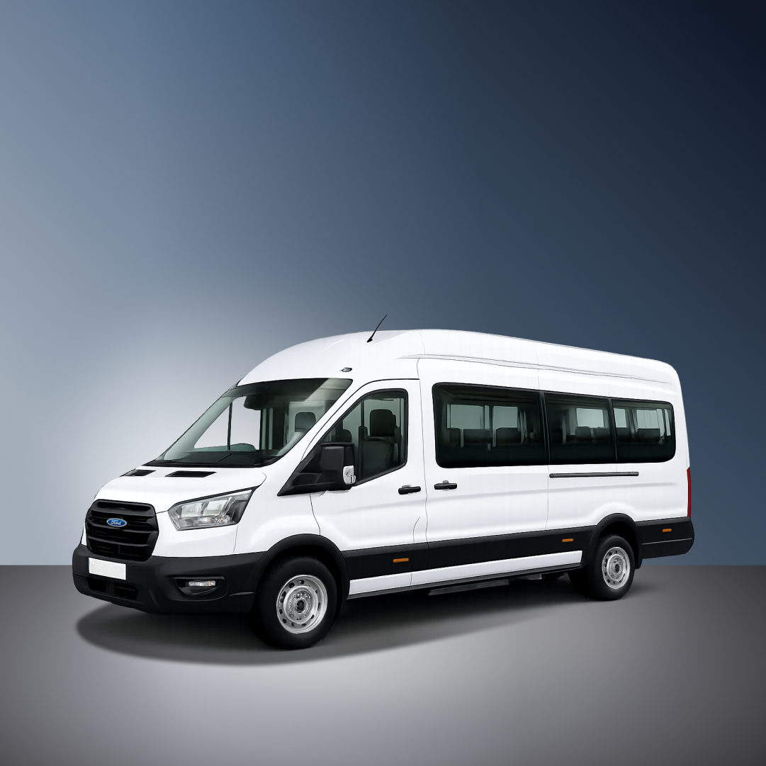 The Ford Transit 17-seat minibus is a robust and flexible people-carrier designed to move groups comfortably. As a full-size minibus version of the Transit line, it offers generous headroom and seating capacity, making it suitable for small groups, schools, organisations, or group travel.